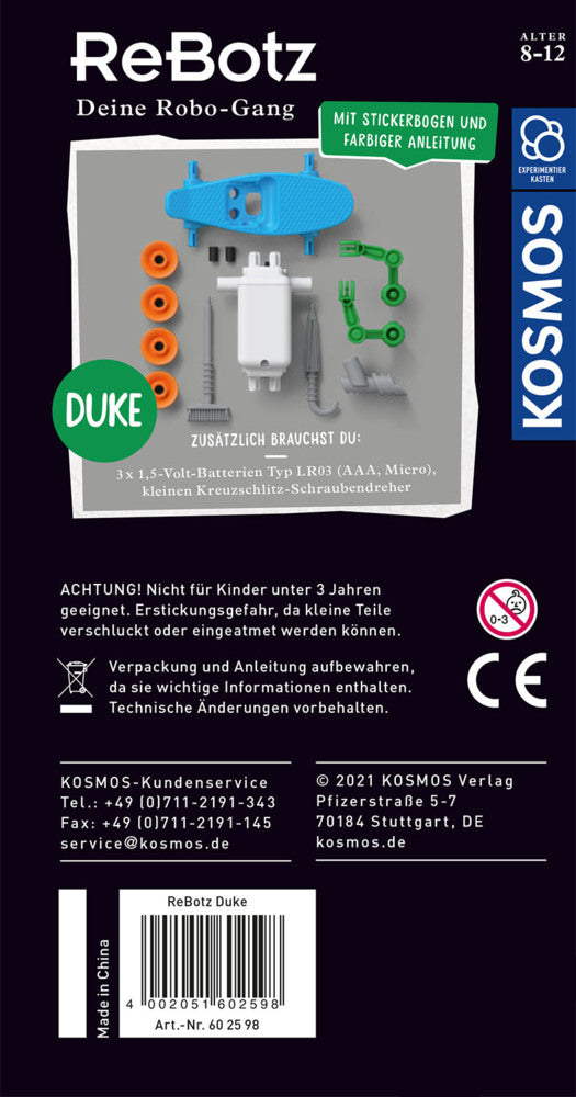 Kosmos, Rebotz, Duke, Roboter-Baukasten, Robotik, Technik-Spielzeug, Roboter für Kinder, MINT-Experiment, Kosmos Experimente, DIY-Roboter, Mitbringsel, Geschenkidee, Forschen, Lernen, Experimentierkasten, Elektronik-Bausatz |
