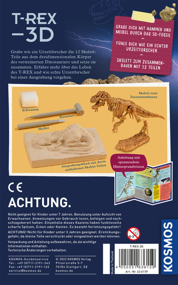 Experimentierkästen, Ausgrabungsset, Dinosaurier, T-Rex, Urzeit, 3D-Modell, Fossilien, Kosmos Experimentierset, Forschen & Entdecken, Geschenkidee für Kinder, Bastelset, Kindergeburtstag, Werkzeug enthalten |