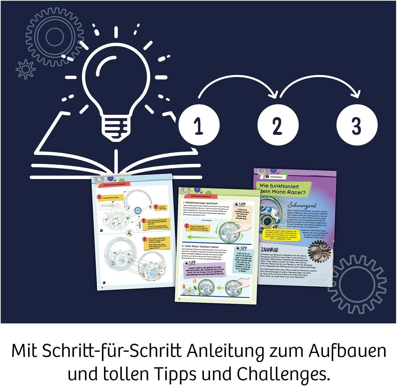 Fun-Science-Experimentierkasten zum Thema Physik und Mechanik – vermittelt spielerisch Schwungrad-Technik – fördert Verständnis für Energieumwandlung, Bewegung und Technik – mit stabilem Mono-Racer zum Selbstbauen |