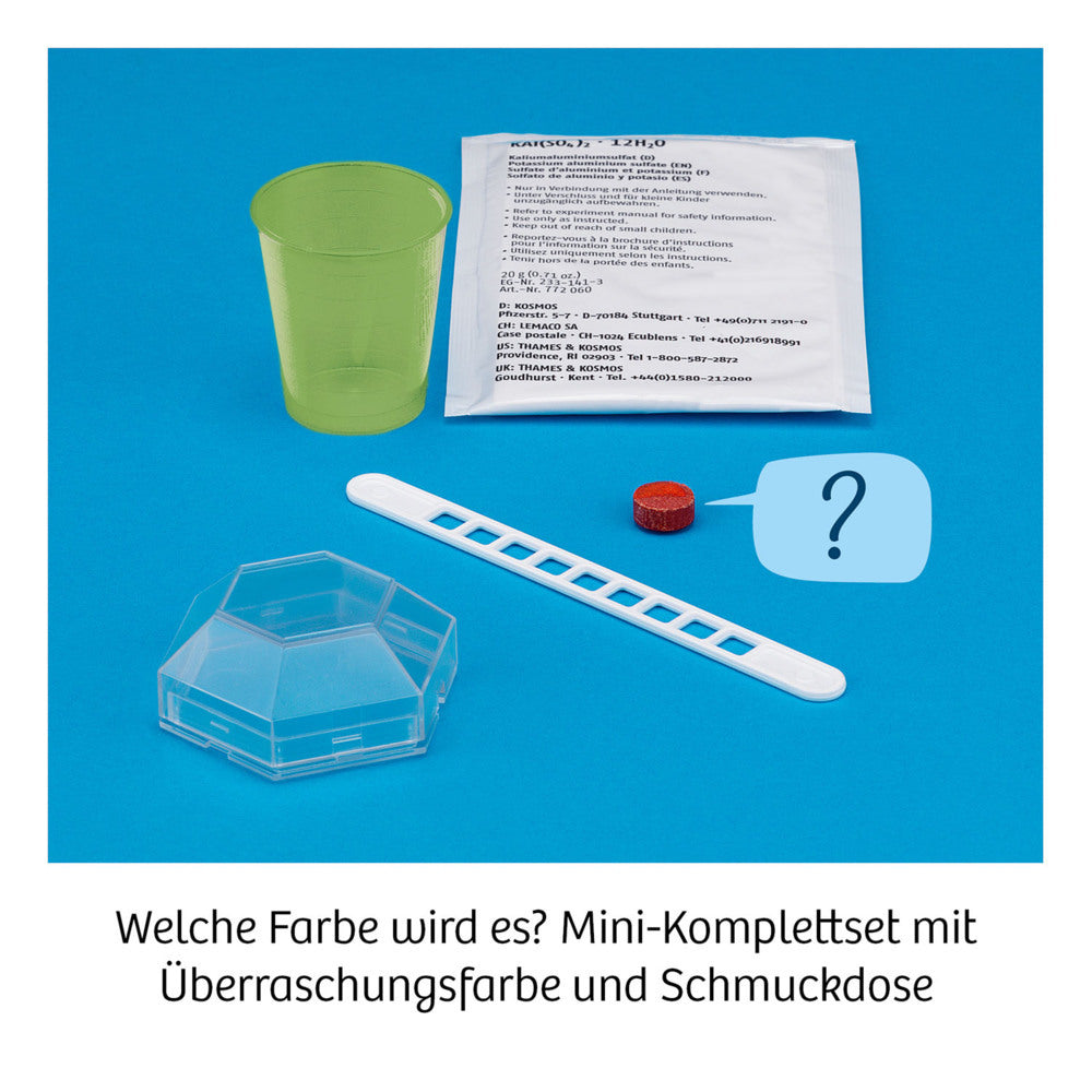Mit dem KOSMOS Experimentierkasten „Überraschungskristalle selber züchten“ erschaffen Kinder ab 10 Jahren funkelnde Kristalle aus eigener Hand. Der enthaltene Alaun sorgt für spannende chemische Reaktionen – das Ergebnis: wunderschöne Kristalle in einer Schmuckdose. Fördert Forschergeist, Neugier und naturwissenschaftliches Verständnis. |