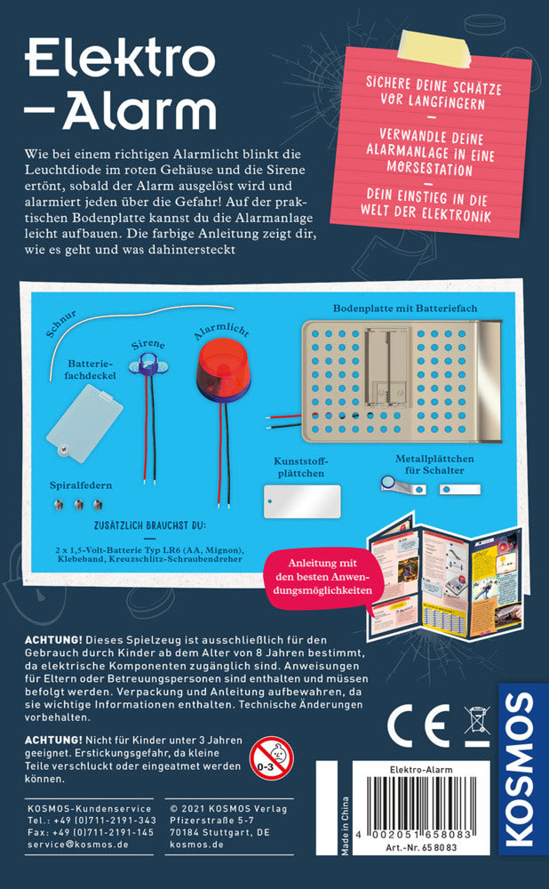 Kosmos, Elektro-Alarm, Alarmanlage, Experimentierkasten, Kosmos Experimente, Elektronik-Baukasten, MINT, Forschen, Physik, DIY, Lernspiel, Kinder ab 8 Jahren, Geburtstagsgeschenk, Kosmos Forscherset, Entdecken, Technik, Experimente für Kinder |