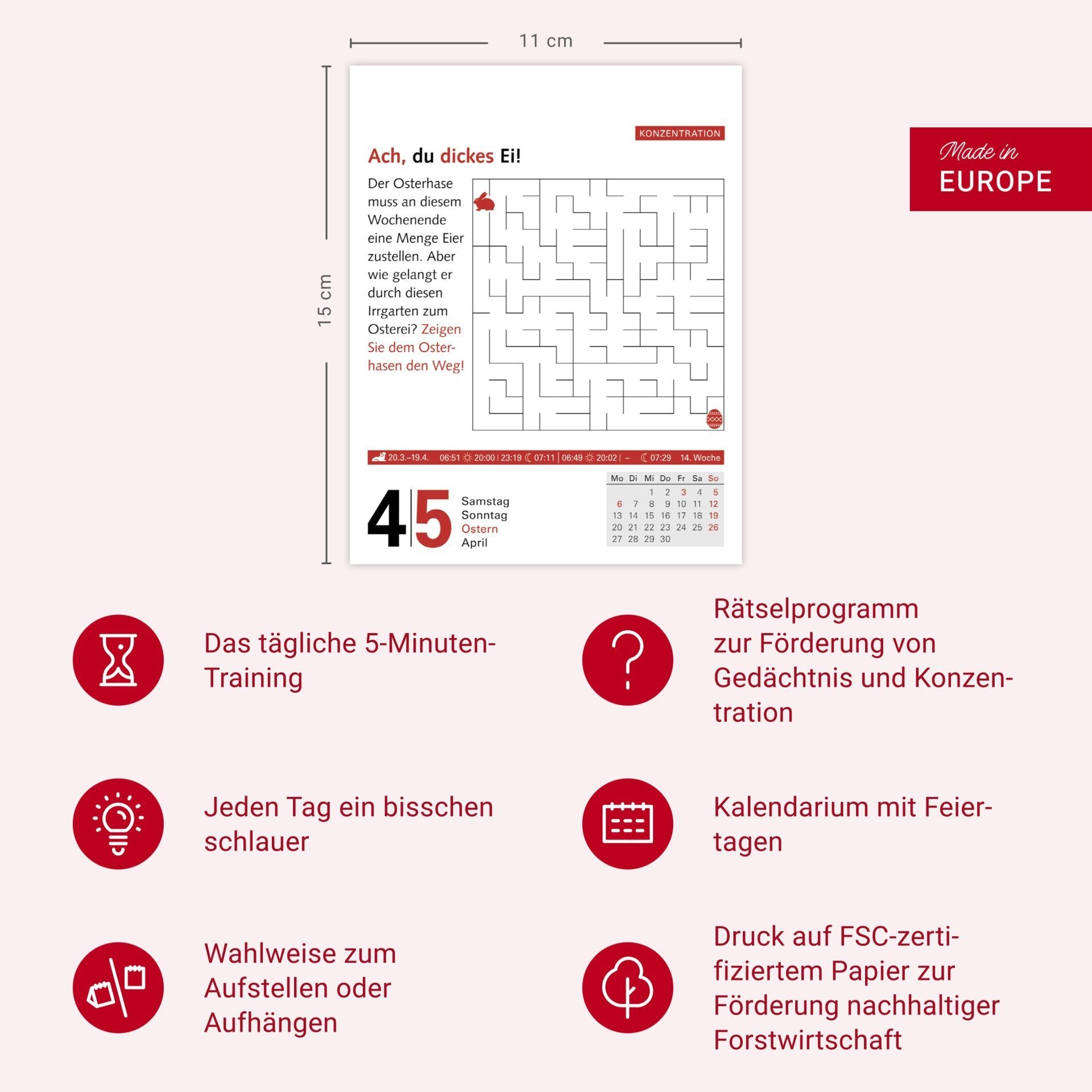 Abreißkalender 2026, tägliches Gedächtnistraining, Kalender zum Abreißen, Gehirnleistung steigern, Tageskalender 2026, Tischkalender, Aufstellkalender, Rätselkalender, Wissenskalender |