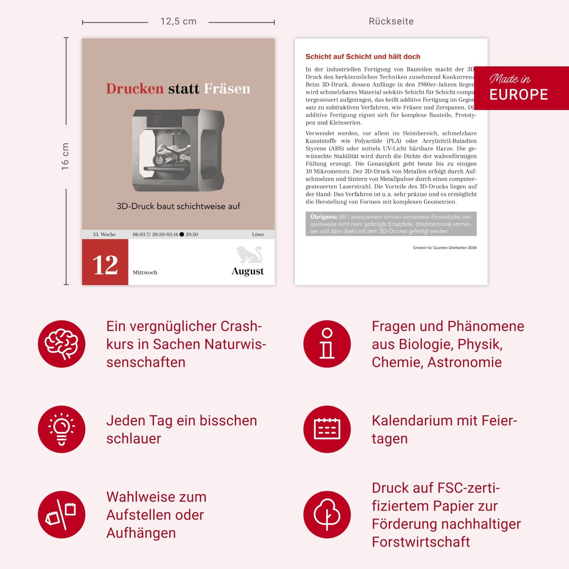Kalender 2026, populärwissenschaft, Tagesabreißkalender, Allgemeinbildung, Naturwissenschaften, Physik, Geschenkideen |